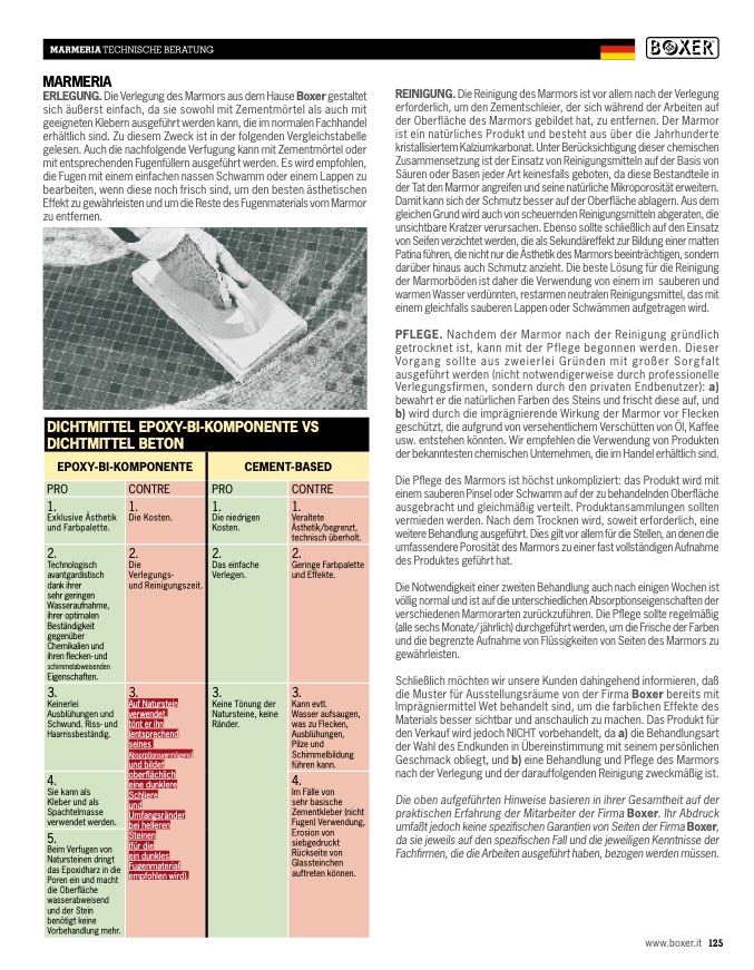 Geschmack obliegt, und b) eine Behandlung und Pflege des Marmors