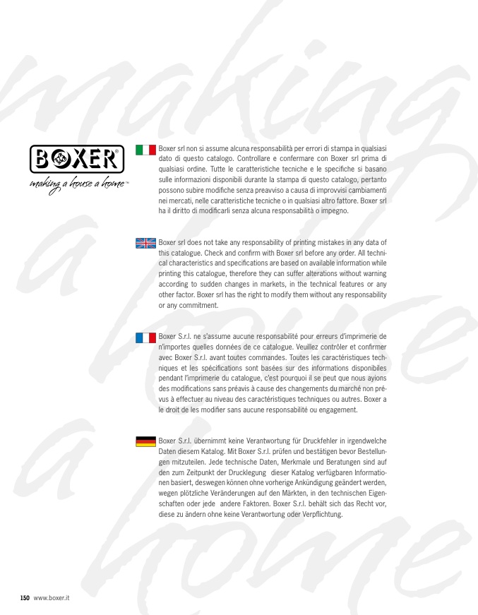 Boxer srl non si assume alcuna responsabilità per errori di stampa in qualsiasi