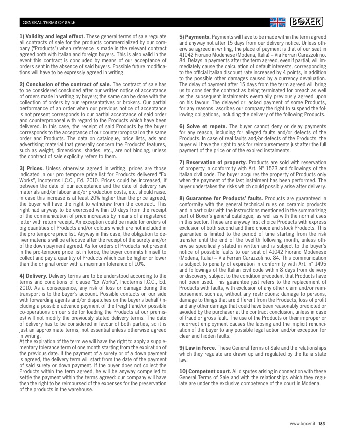 terms and conditions of clause “Ex Works”, Incoterms I.C.C., Ed.
