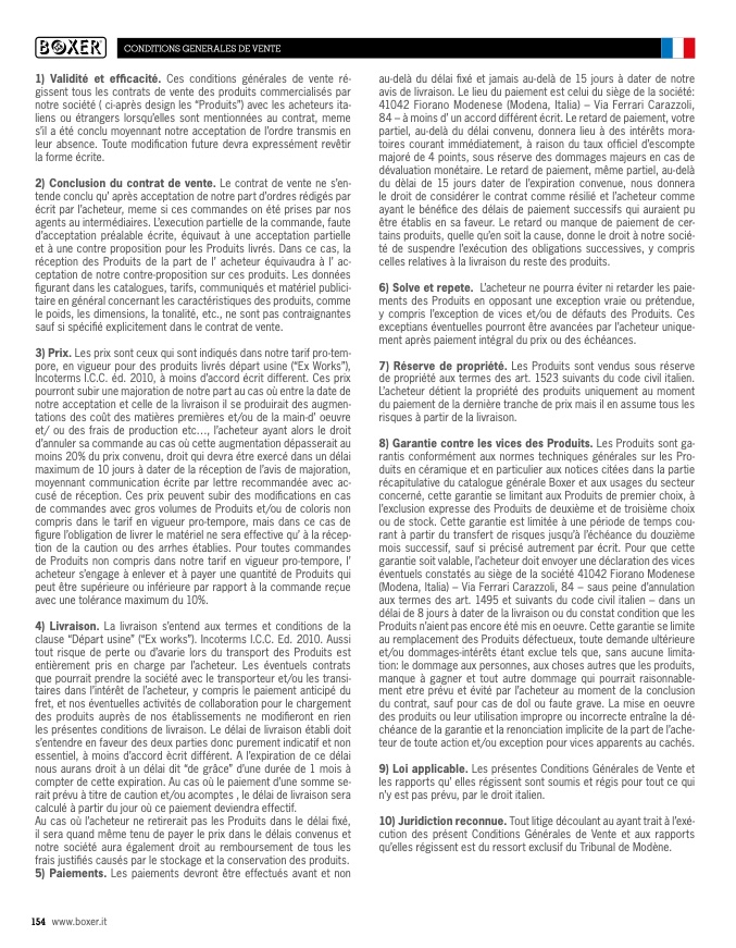 récapitulative du catalogue générale Boxer et aux usages du secteur