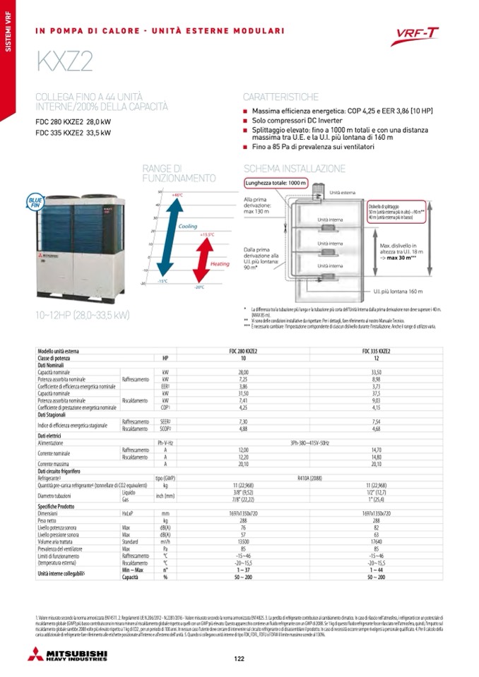 1. Valore misurato secondo la norma armonizzata EN14511. 2. Regolamenti UE N.206/2012 - N.2281/2016 - Valore misurato secondo la norma armonizzata EN14825. 3. La perdita di refrigerante contribuisce al cambiamento climatico. In caso di rilascio nell’atmosfera, i refrigeranti con un potenziale di