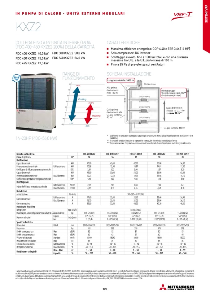 1. Valore misurato secondo la norma armonizzata EN14511. 2. Regolamenti UE N.206/2012 - N.2281/2016 - Valore misurato secondo la norma armonizzata EN14825. 3. La perdita di refrigerante contribuisce al cambiamento climatico. In caso di rilascio nell’atmosfera, i refrigeranti con un potenziale di
