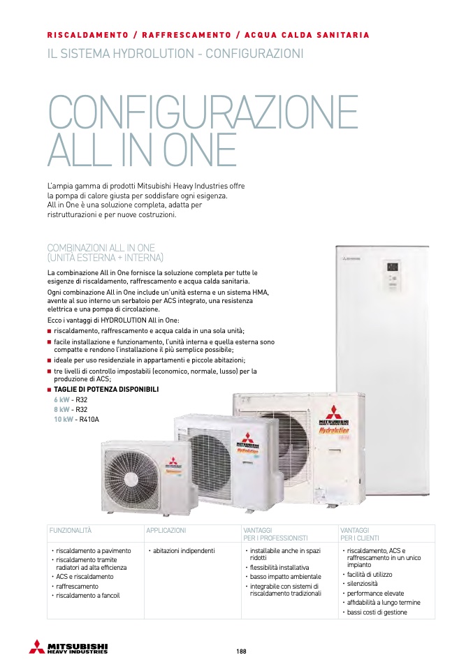 riscaldamento, raffrescamento e acqua calda in una sola unità;