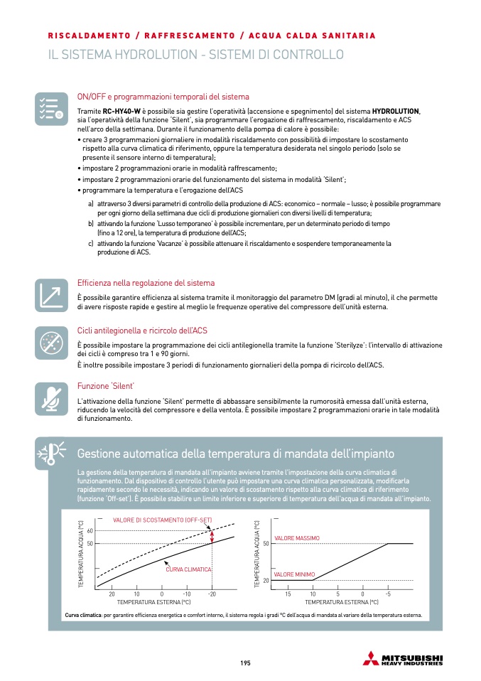 Curva climatica: per garantire efficienza energetica e comfort interno, il sistema regola i gradi °C dell’acqua di mandata al variare della temperatura esterna.