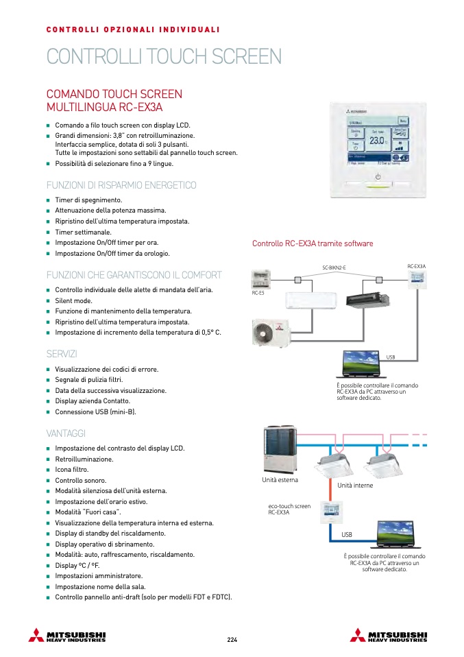 Tutte le impostazioni sono settabili dal pannello touch screen.