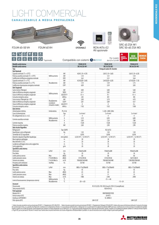 1. Valore misurato secondo la norma armonizzata EN14511. 2. Regolamento UE N.206/2012 - - Valore misurato secondo la norma armonizzata EN14825. 3. Regolamento Delegato UE N.626/2011 relativo alla nuova etichettatura indicante il consumo di energia
