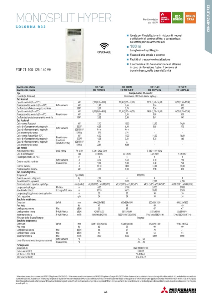1. Valore misurato secondo la norma armonizzata EN14511. 2. Regolamento UE N.206/2012 - - Valore misurato secondo la norma armonizzata EN14825. 3. Regolamento Delegato UE N.626/2011 relativo alla nuova etichettatura indicante il consumo di energia dei condizionatori d'aria. 4. La perdita di refrigerante contribuisce