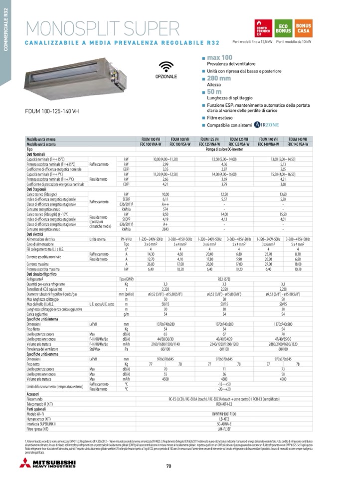 1. Valore misurato secondo la norma armonizzata EN14511. 2. Regolamento UE N.206/2012 - - Valore misurato secondo la norma armonizzata EN14825. 3. Regolamento Delegato UE N.626/2011 relativo alla nuova etichettatura indicante il consumo di energia dei condizionatori d'aria. 4. La perdita di refrigerante contribuisce
