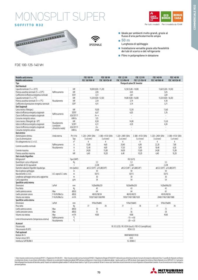 1. Valore misurato secondo la norma armonizzata EN14511. 2. Regolamento UE N.206/2012 - - Valore misurato secondo la norma armonizzata EN14825. 3. Regolamento Delegato UE N.626/2011 relativo alla nuova etichettatura indicante il consumo di energia dei condizionatori d'aria. 4. La perdita di refrigerante contribuisce