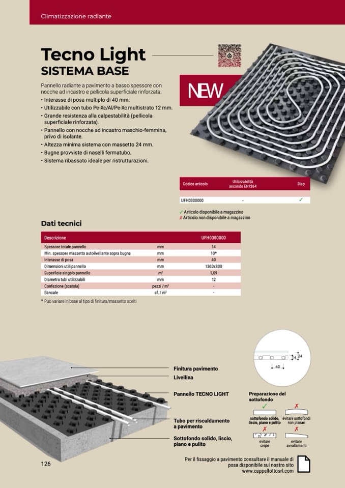 Pannello radiante a pavimento a basso spessore con