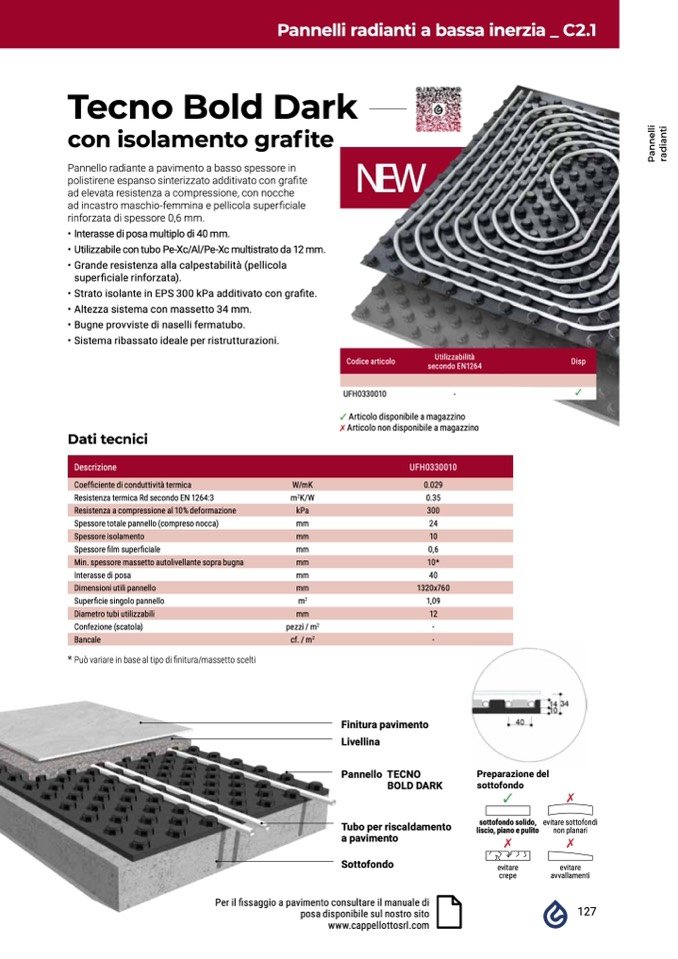 • Strato isolante in EPS 300 kPa additivato con grafite.