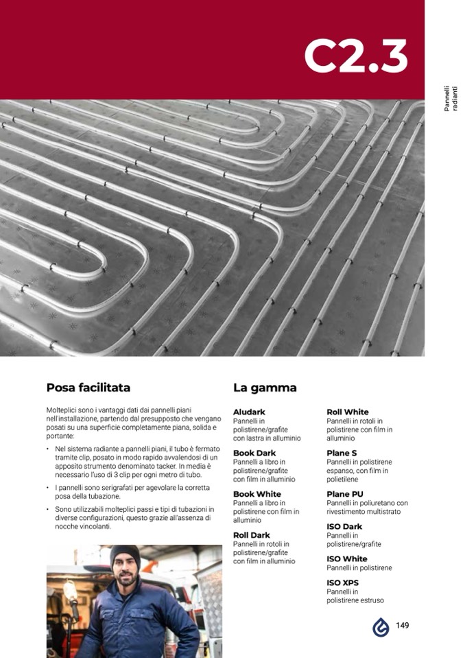 • Nel sistema radiante a pannelli piani, il tubo è fermato