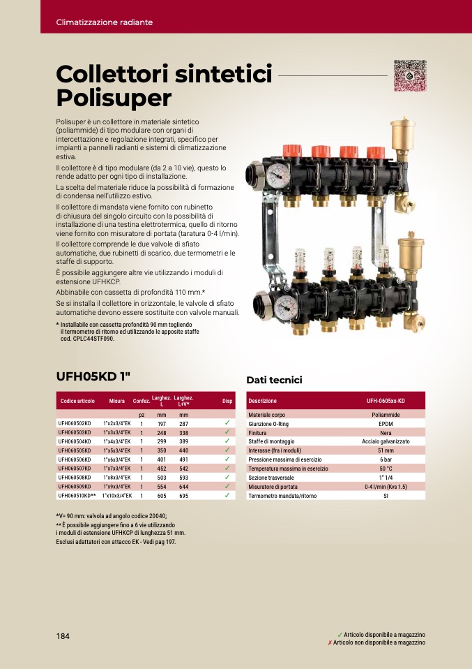 Il collettore è di tipo modulare (da 2 a 10 vie), questo lo