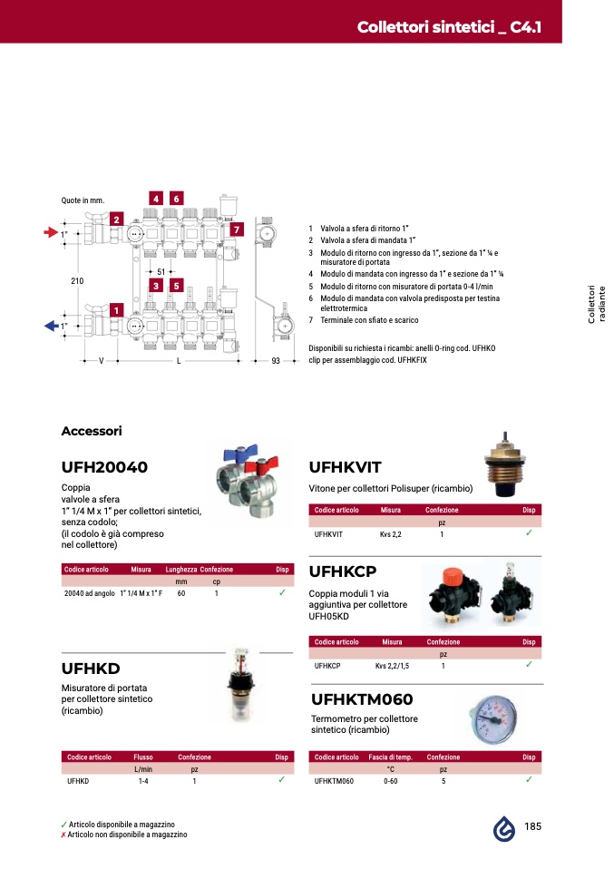 Disponibili su richiesta i ricambi: anelli O-ring cod. UFHKO