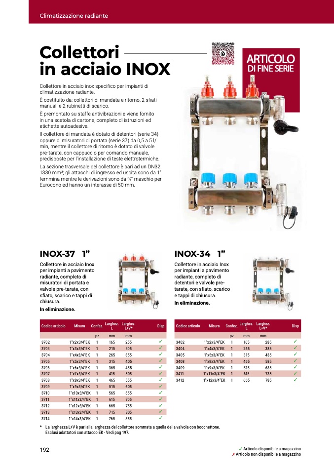 Il collettore di mandata è dotato di detentori (serie 34)