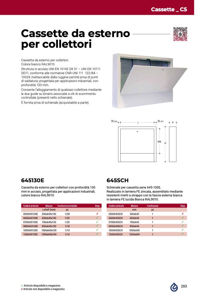 Cassetta da esterno per collettori con profondità 130
