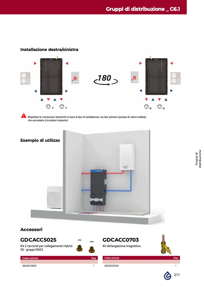 Rispettare le connessioni idrauliche in base al tipo di installazione, sia lato primario (pompa di calore-caldaia)