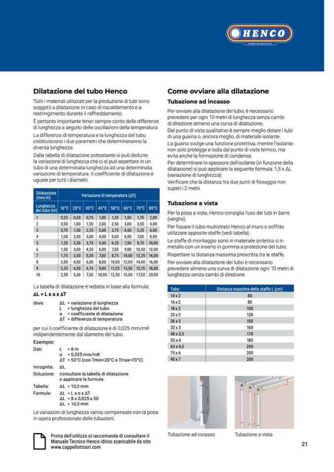 Per la posa a vista, Henco consiglia l'uso dei tubi in barre