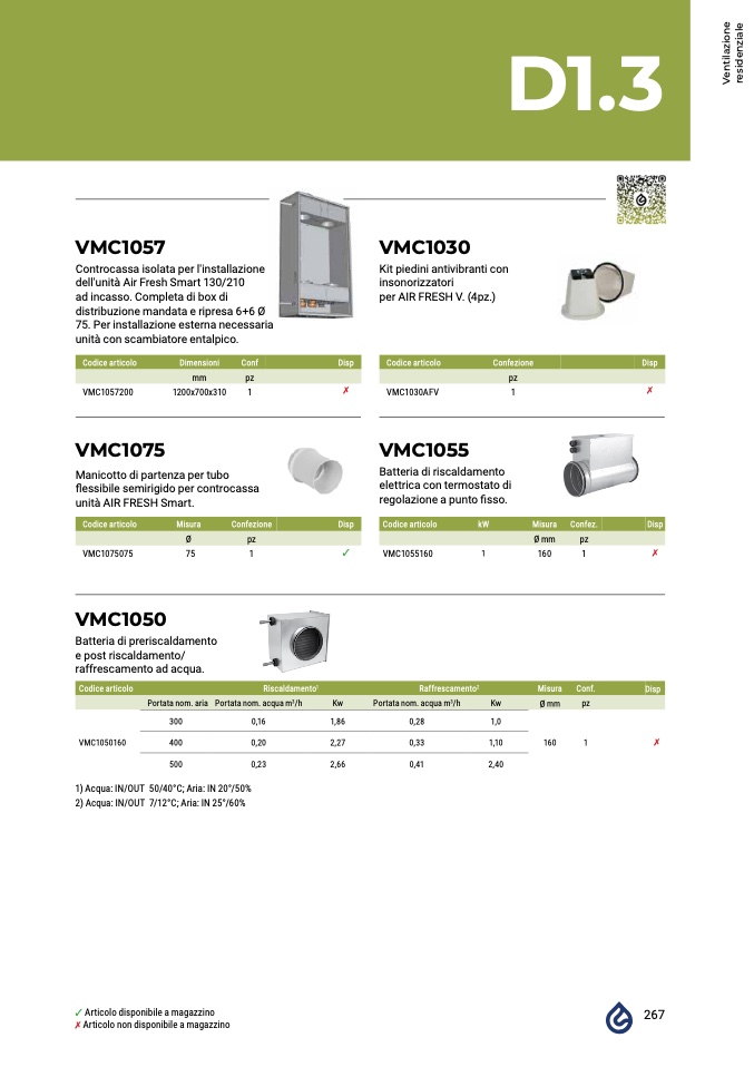 2) Acqua: IN/OUT 7/12°C; Aria: IN 25°/60%