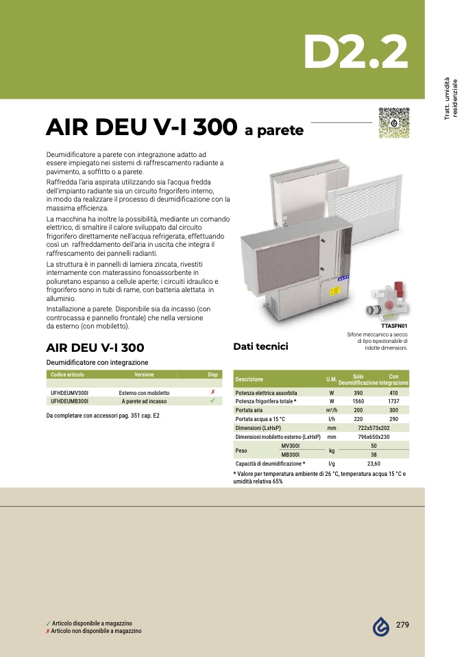 Deumidificatore a parete con integrazione adatto ad