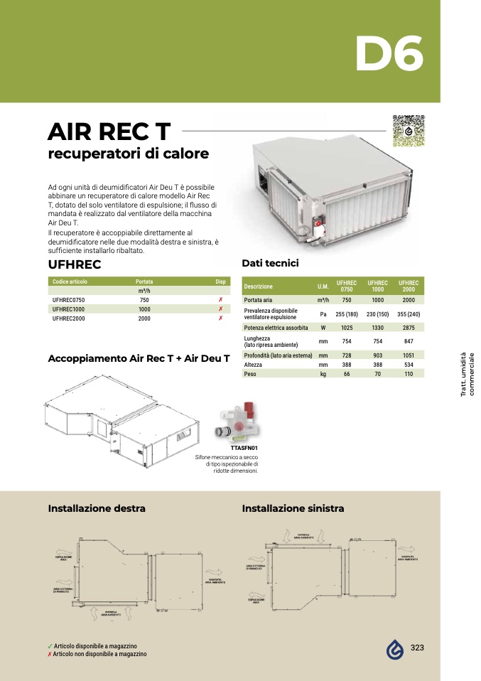 deumidificatore nelle due modalità destra e sinistra, è