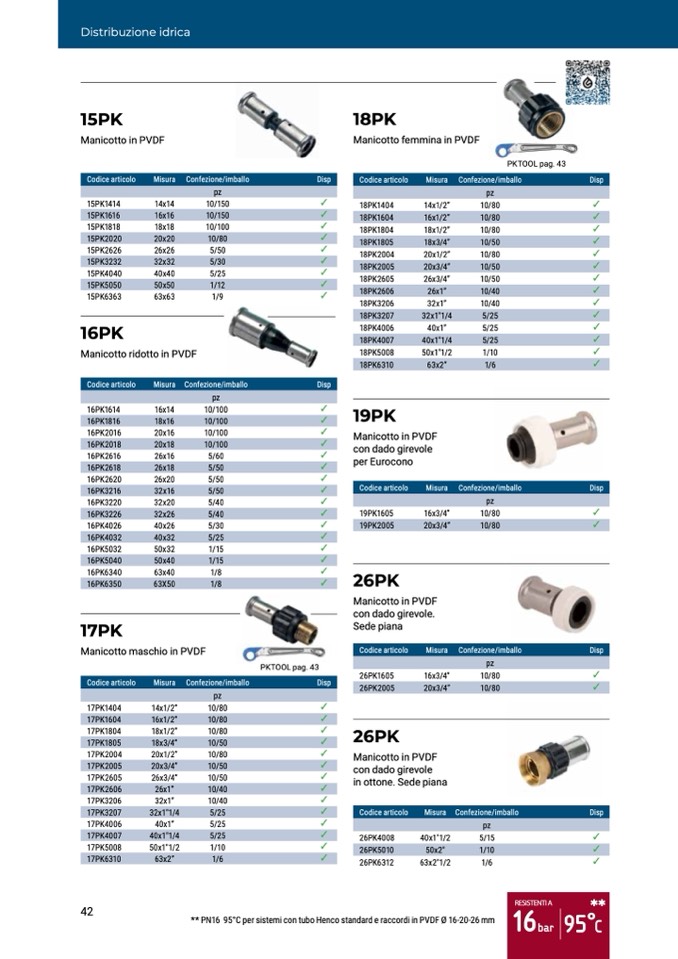 ** PN16 95°C per sistemi con tubo Henco standard e raccordi in PVDF Ø 16-20-26 mm