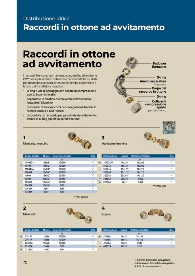 I raccordi Henco ad avvitamento sono realizzati in ottone