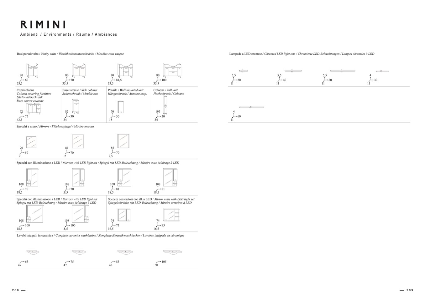 Specchi con illuminazione a LED / Mirrors with LED light set / Spiegel mit LED-Beleuchtung / Miroirs avec éclairage