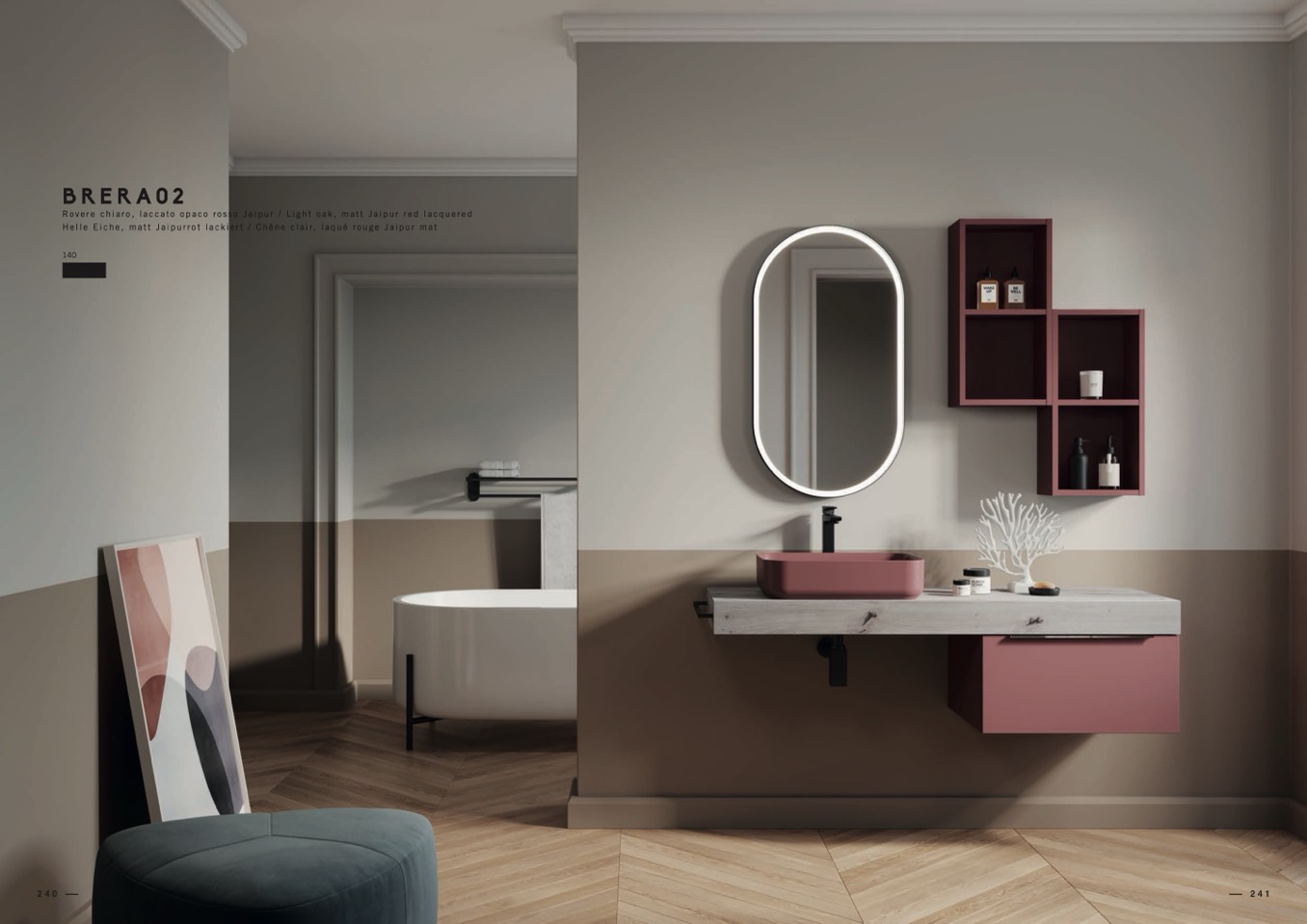 Rovere chiaro, laccato opaco rosso Jaipur / Light oak, matt Jaipur red lacquered