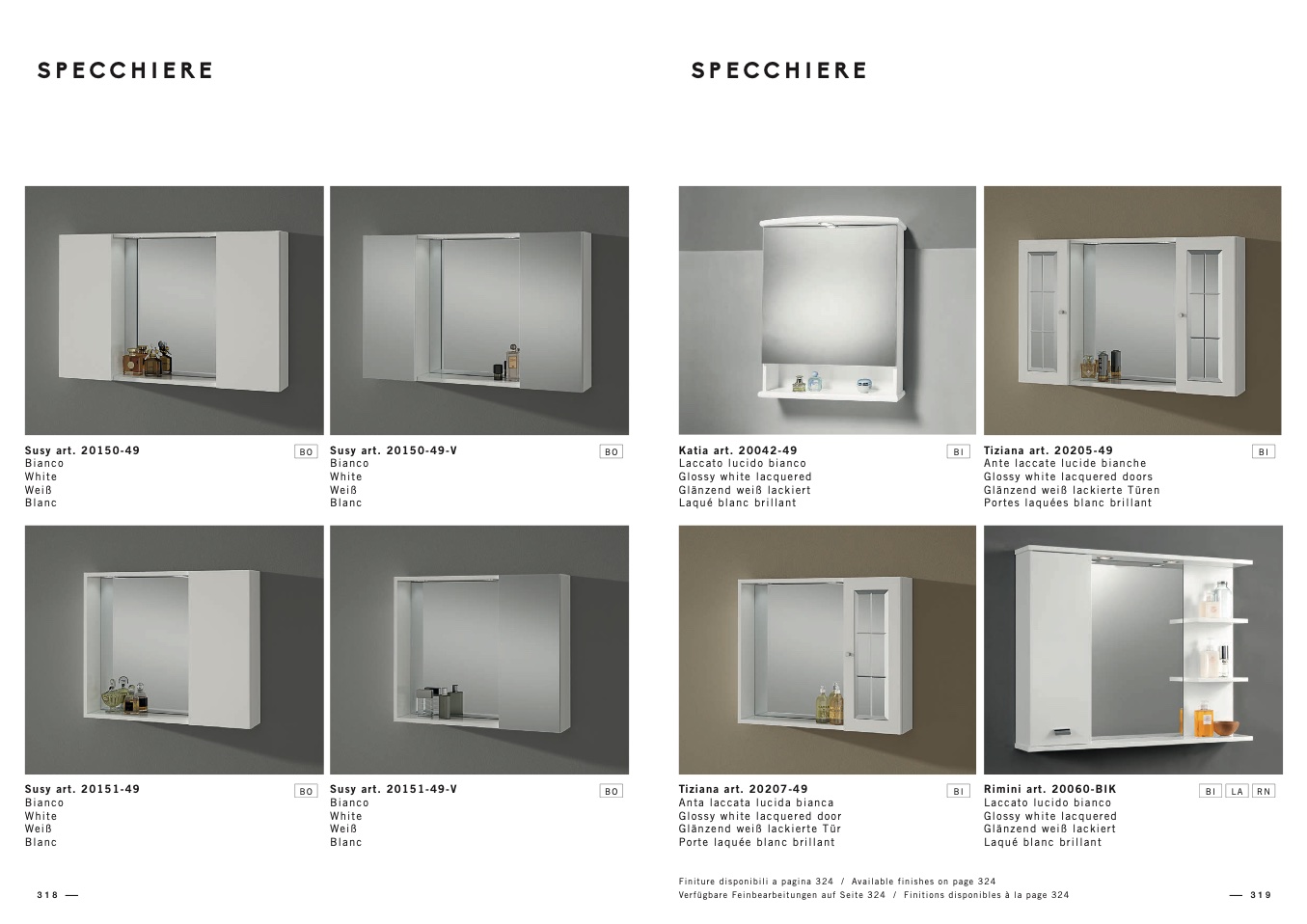 Finiture disponibili a pagina 324 / Available finishes on page 324