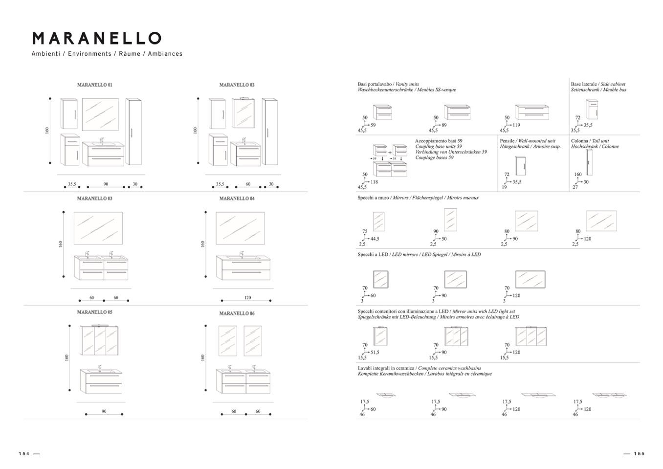 Lavabi integrali in ceramica / Complete ceramics washbasins