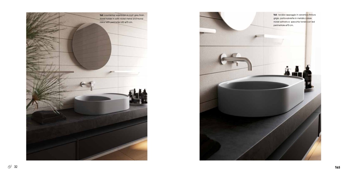 T65: lavabo appoggio in ceramica finitura
