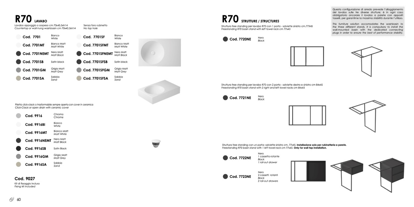 Struttura free standing per lavabo R70 con 2 porta - salviette destro e sinistro cm 84x45
