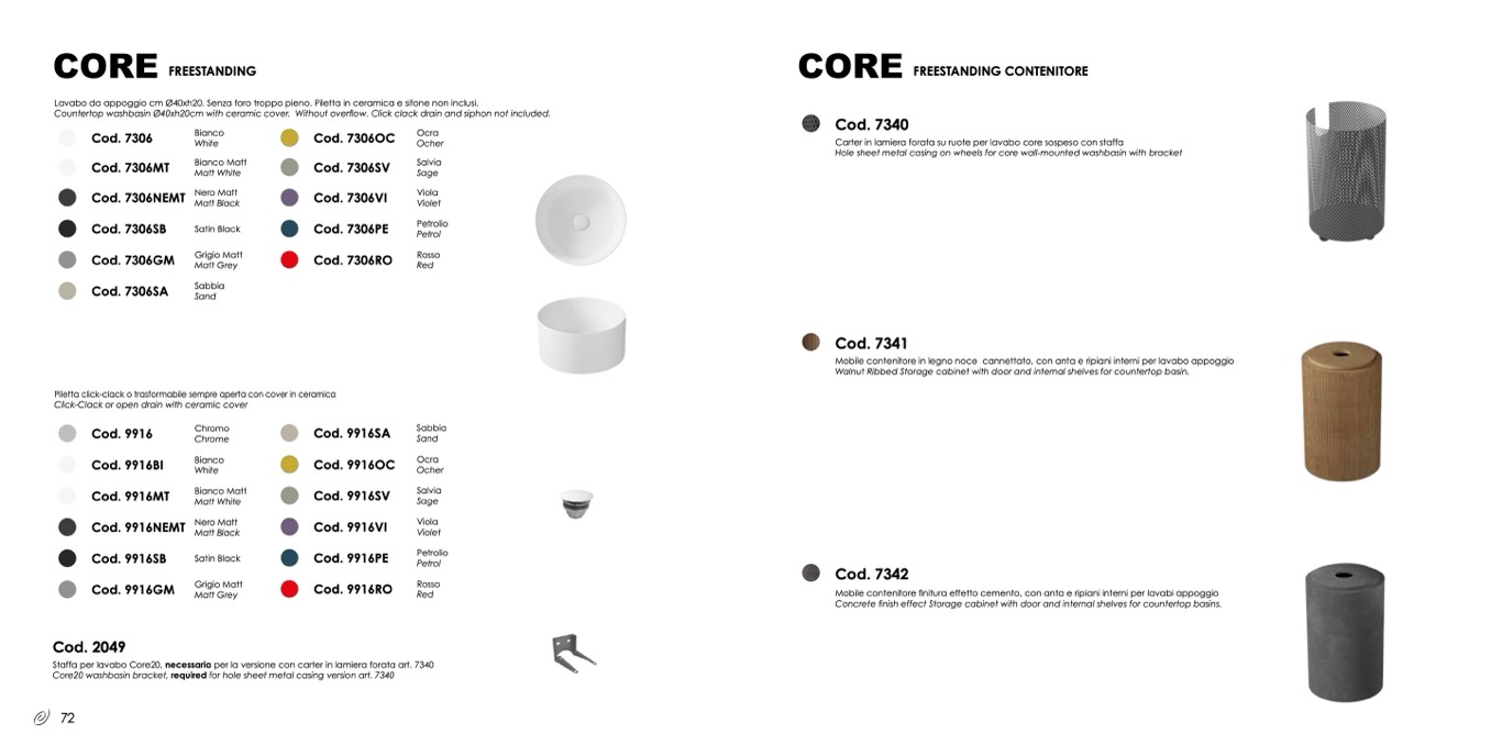 Staffa per lavabo Core20, necessaria per la versione con carter in lamiera forata art. 7340