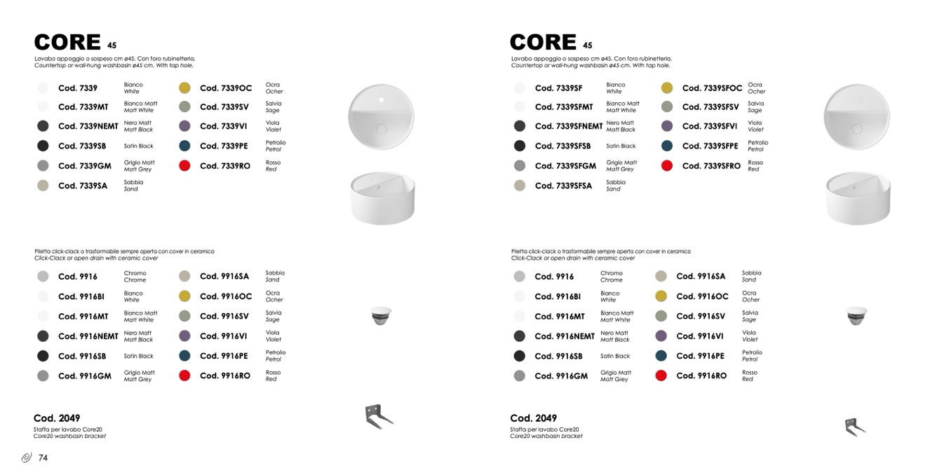 Lavabo appoggio o sospeso cm ø45. Con foro rubinetteria.