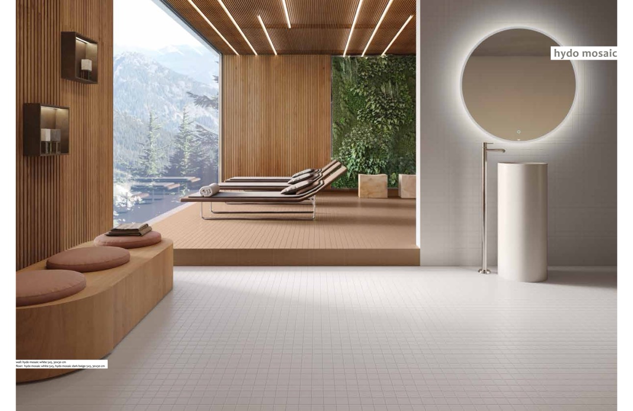 floor: hydo mosaic white 5x5, hydo mosaic dark beige 5x5, 30x30 cm