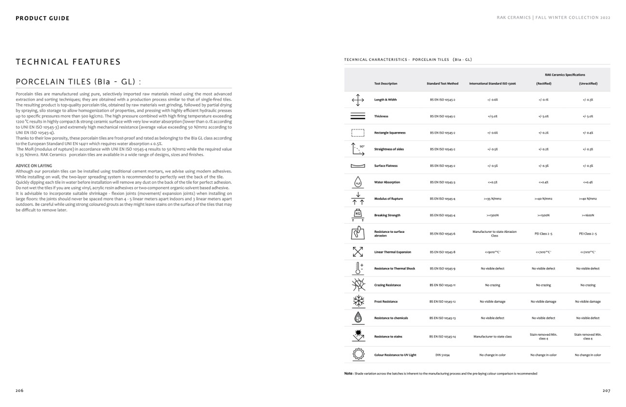 is 35 N/mm2. RAK Ceramics porcelain tiles are available in a wide range of designs, sizes and finishes.