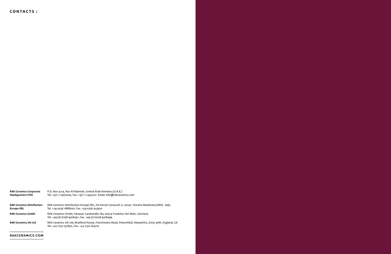 Tel. +971 7 2467000, Fax. +971 7 2445270 Email: info@rakceramics.com