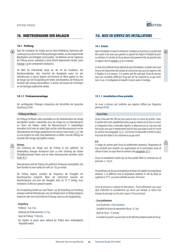 die Anlage nach der Druckprüfung leer bleibt, wird empfohlen, die Prüfung mit