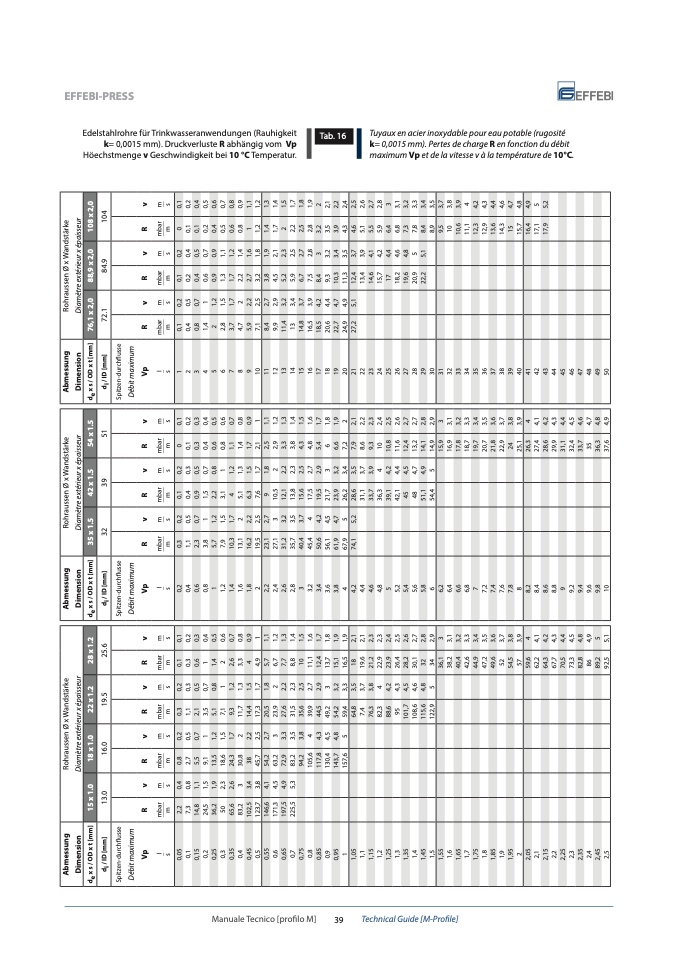 k= 0,0015 mm). Druckverluste R abhängig vom Vp
