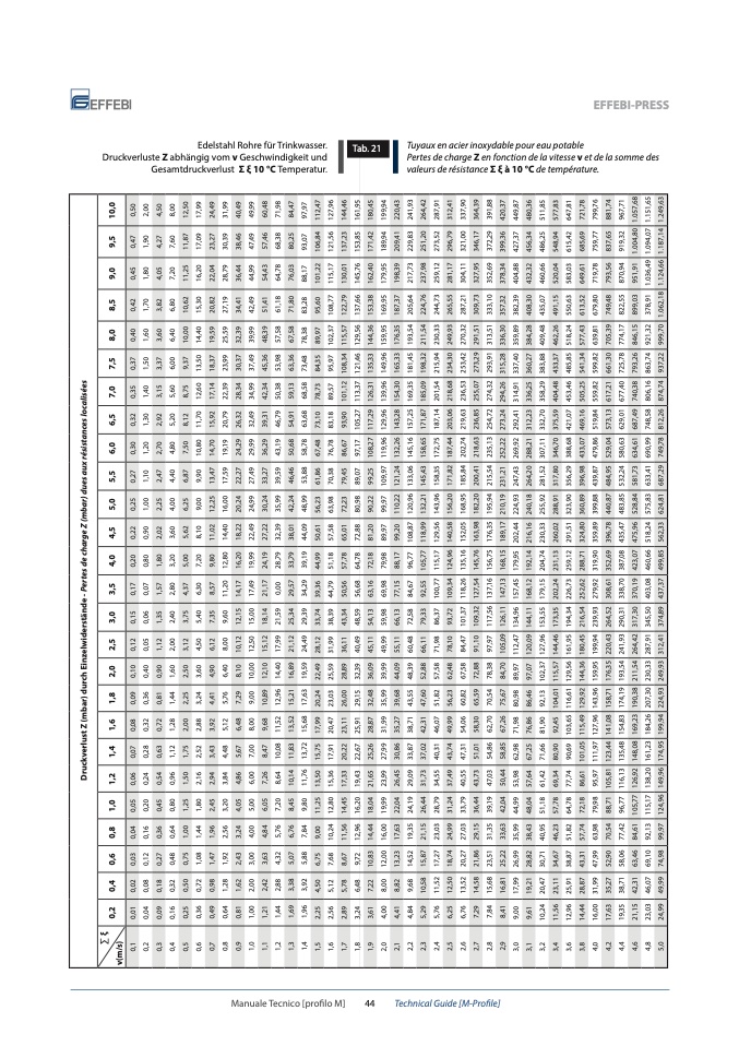 Gesamtdruckverlust Σ ξ 10 °C Temperatur.
