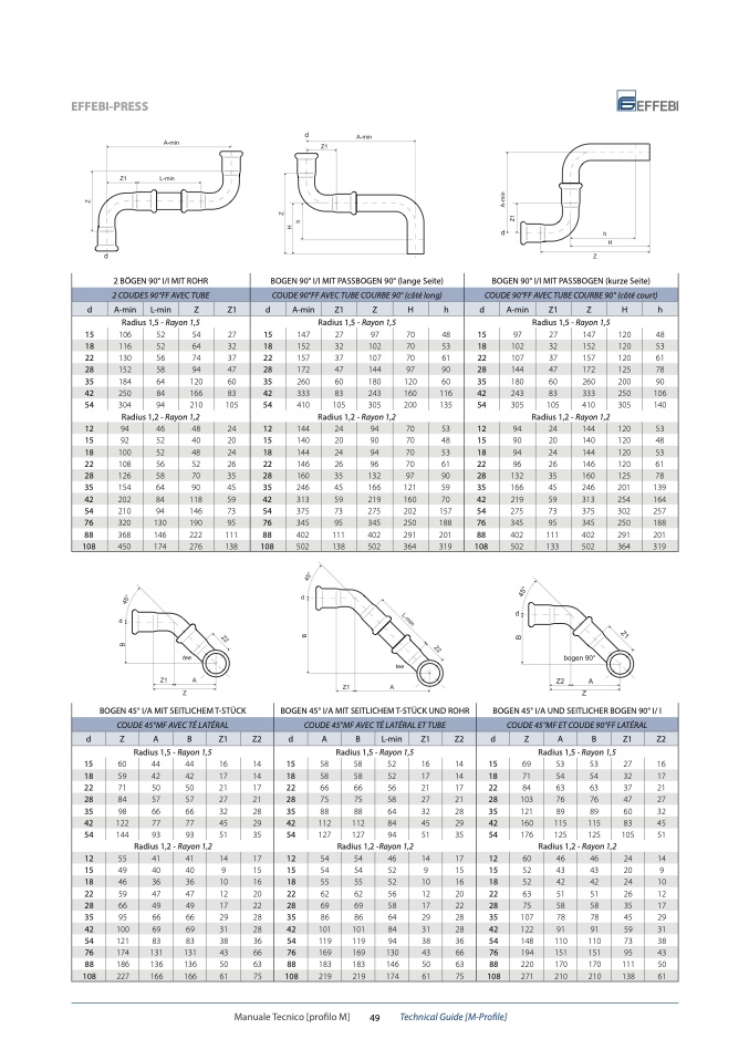 BOGEN 45° I/A UND SEITLICHER BOGEN 90° I/ I