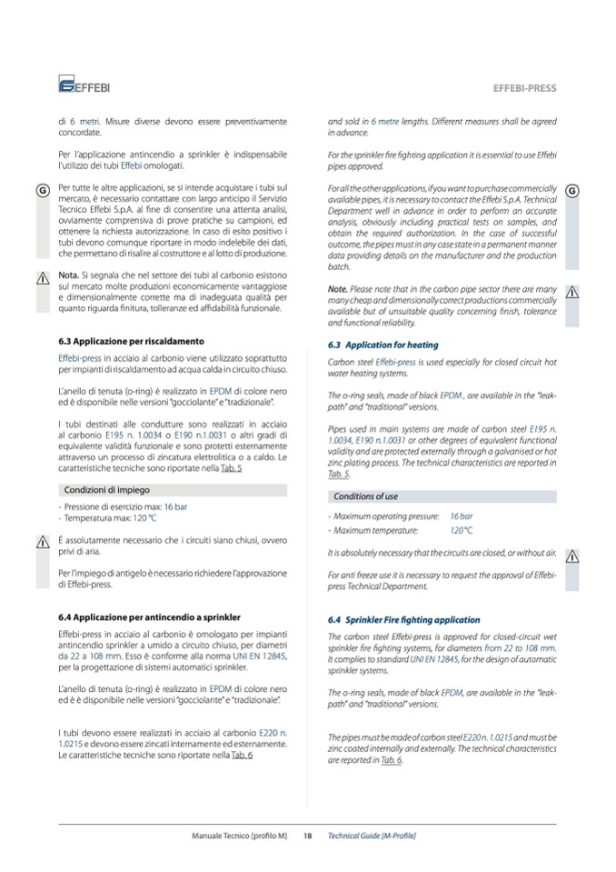 available pipes, it is necessary to contact the Effebi S.p.A. Technical
