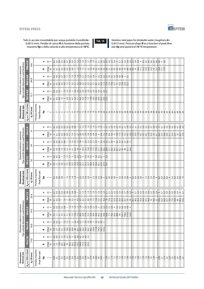 Tubi in acciaio inossidabile per acqua potabile (ruvidità k=