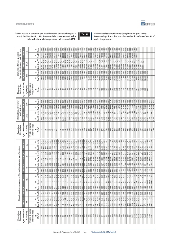 Tubi in acciaio al carbonio per riscaldamento (ruvidità k= 0,0015