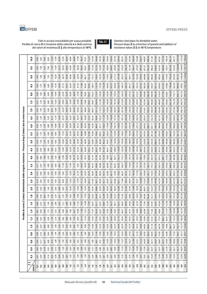 dei valori di resistenza Σ ξ alla temperatura di 10°C.