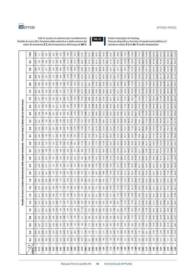 valori di resistenza Σ ξ alla temperatura dell’acqua di 80°C.