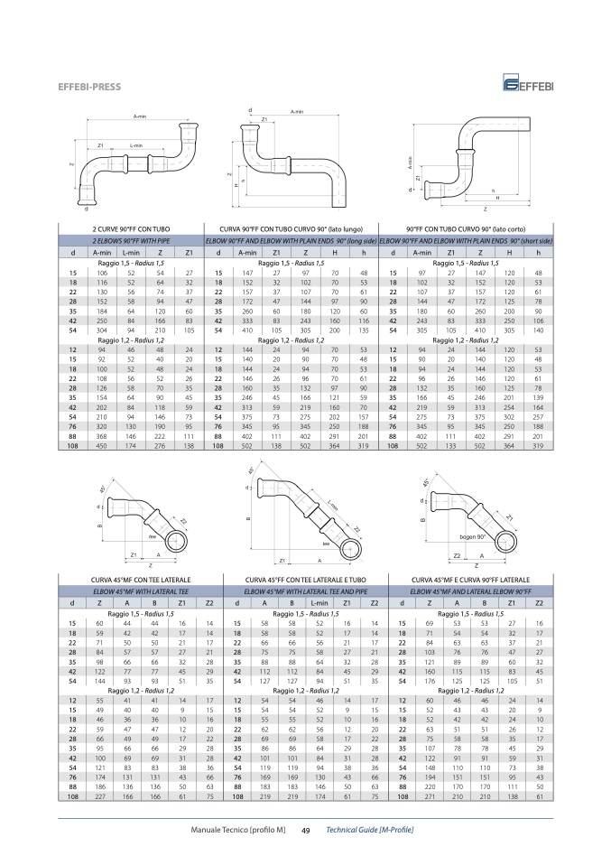 CURVA 45°MF E CURVA 90°FF LATERALE