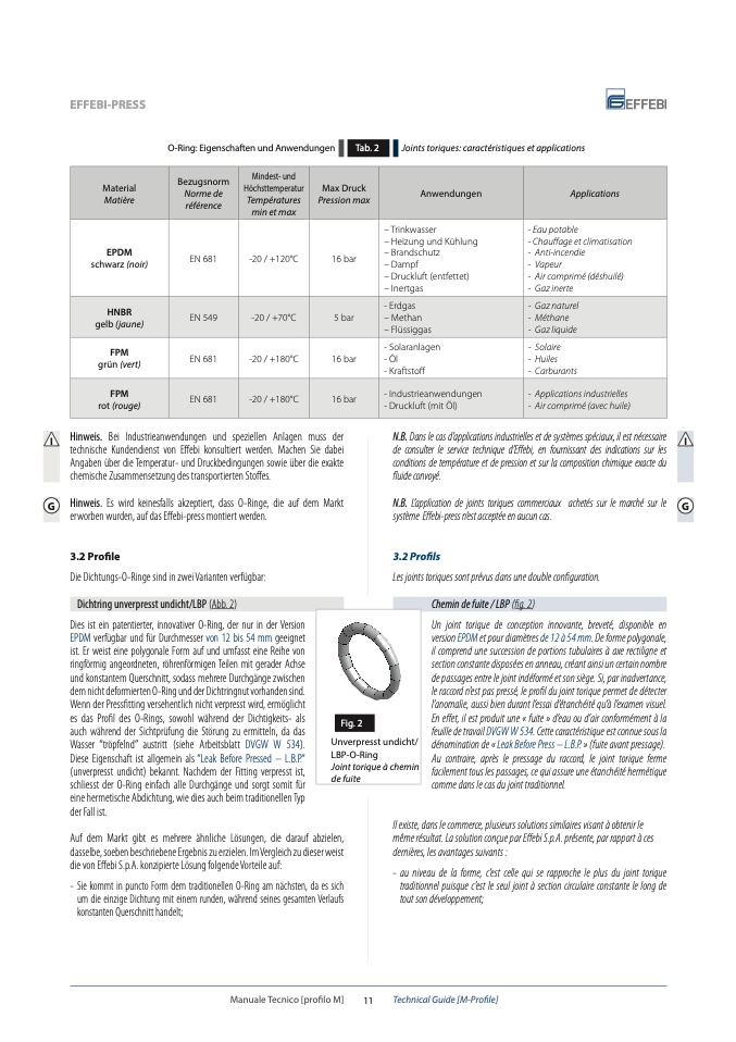 G Hinweis. Es wird keinesfalls akzeptiert, dass O-Ringe, die auf dem Markt