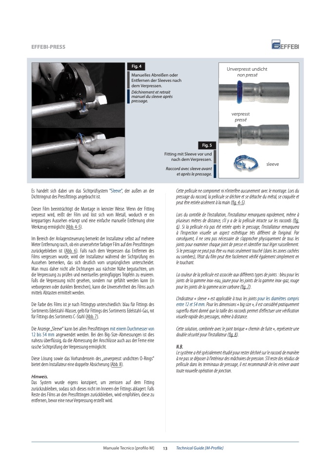Die Anzeige„Sleeve“ kann bei allen Pressfittingen mit einem Durchmesser von